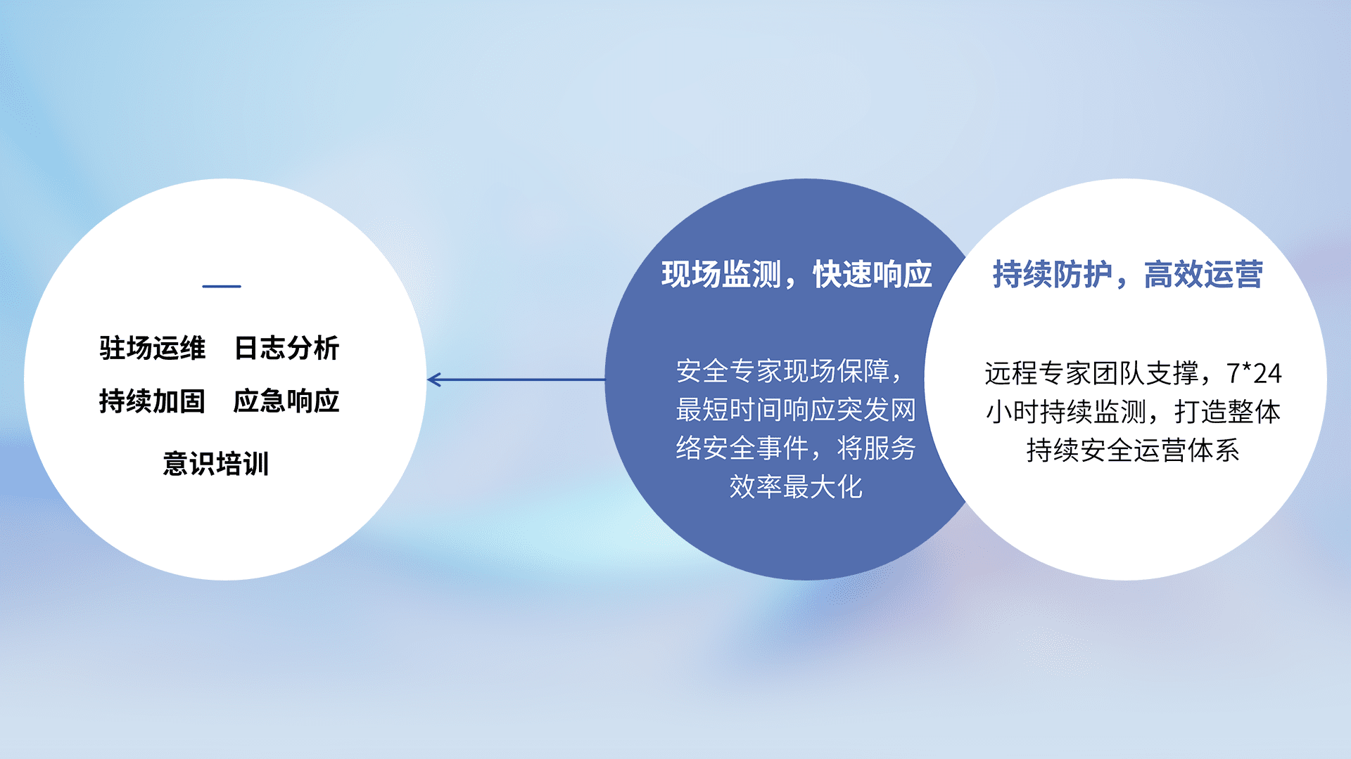 7X24小时持续监测安全事件,保持安全策略有效性,降低资产脆弱性风险,,,,精准拦截黑客攻击,,,减少被黑客利用的机会,,第一时间遏制,,降低损失。。。